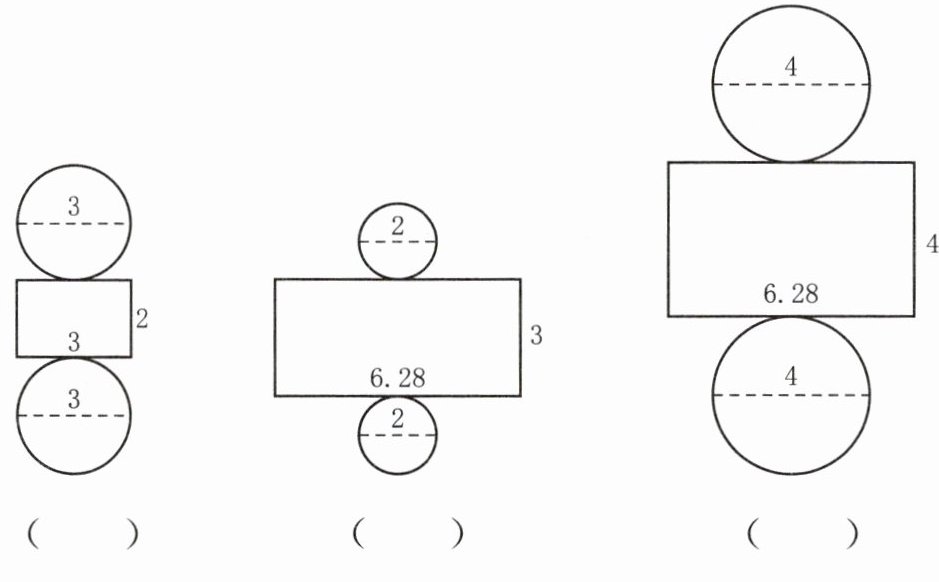 3. 第三个图形:底面圆周长=3.14×4=12.56cm,长方形长6.28cm,12.56≠6.28,不是圆柱展开图。