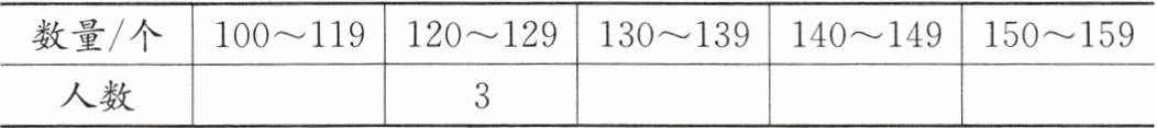 六年级一班女生1分钟跳绳成绩统计表