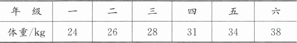(1)一至六年级自己的体重: