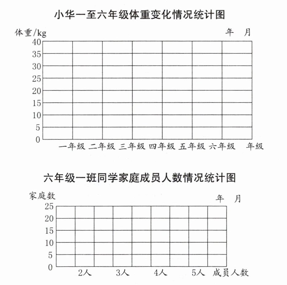 3. 根据第2题中收集的数据,分别完成下面的统计图。
