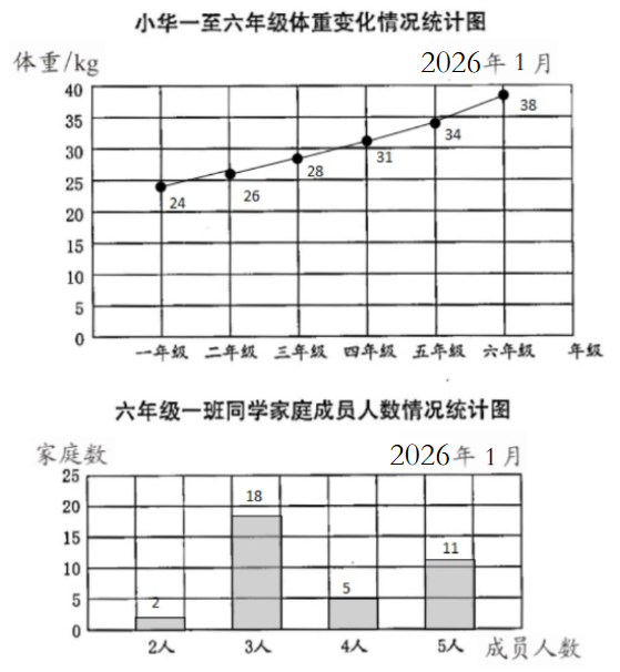 (2)六年级一班家庭成员人数调查: