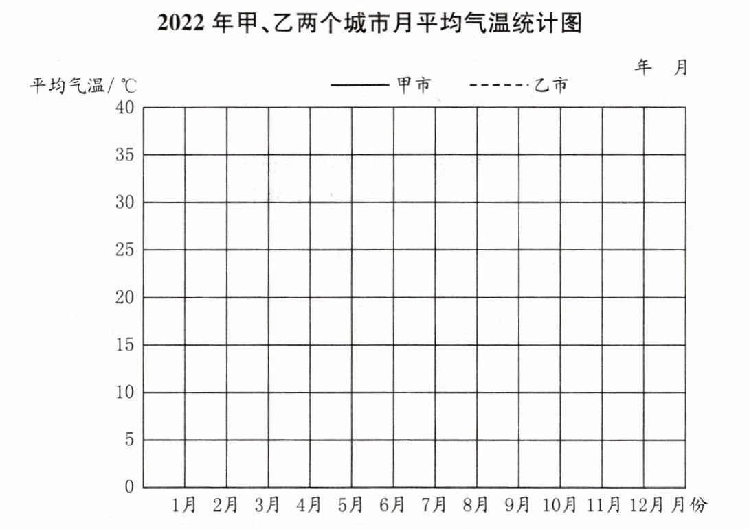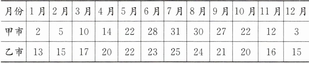 2. 2022年甲、乙两个城市月平均气温如下表:(单位:℃)