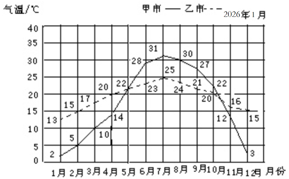 答:甲城市一年四季分明,温度变化较大,夏季和冬季比较明显。
