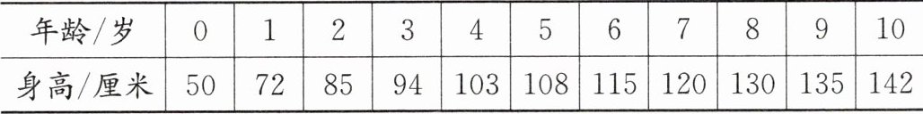 3. 妈妈记录了婷婷0~10岁生日时的身高,结果如下表: