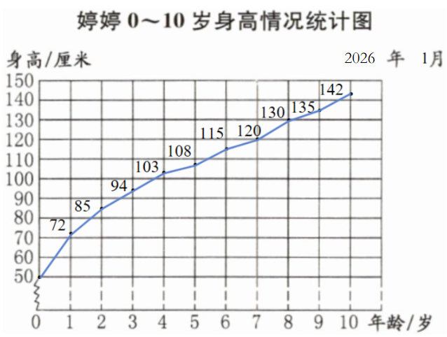 本题结合身高统计数据,考查折线统计图相关知识与数据处理能力,培养学生的统计观念与估算意识。