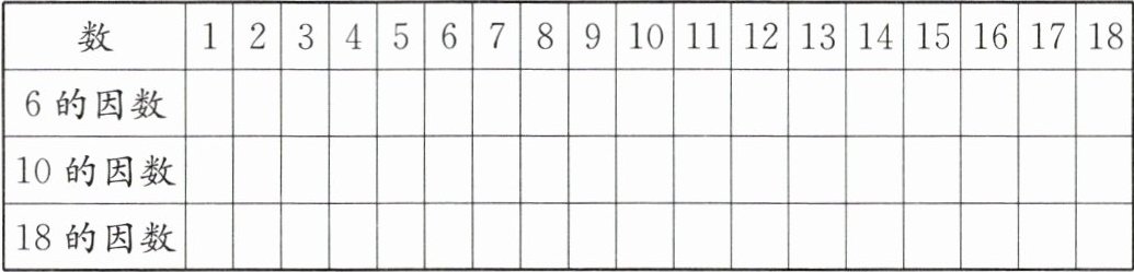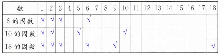 18的因数:1、2、3、6、9、18,在这些数对应的“18的因数”行画√。