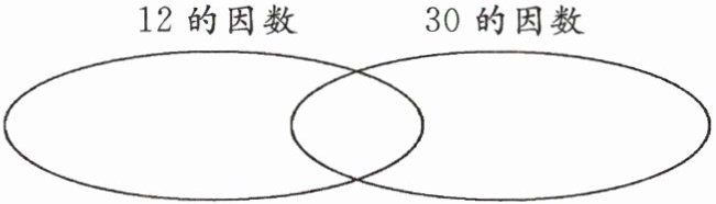 填写图示:左椭圆(12独有的因数)填4,12;中间交集填1,2,3,6;右椭圆(30独有的因数)填5,10,15,30。