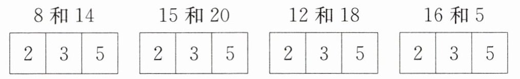 1. 下面每组数有没有公因数 2、3 或 5?先想一想,再圈一圈。
