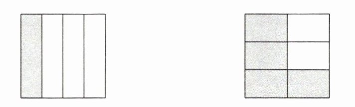 1. 看图写出分数,再通分,并在图中表示通分的结果。