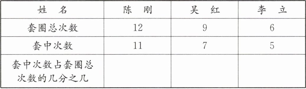 4. 下面是三名同学玩套圈游戏的情况记录。谁套得最准?