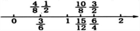 4. 下面哪些分数可以用直线上的同一个点表示?在直线上表示出来。
