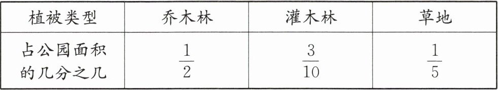 答:乔木林和灌木林一共占公园面积的$ \frac 45$。