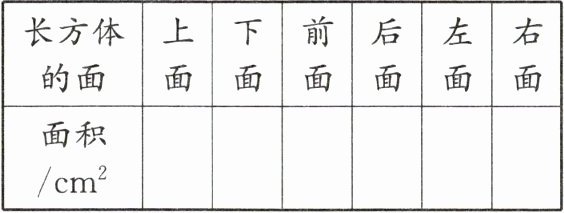 4. 把下面长方体各个面的面积填在表中。