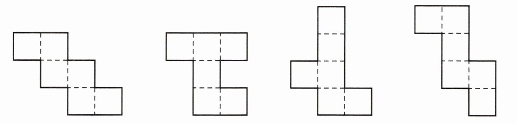 1. 把下面的图形沿虚线折叠,能折成正方体的在括号里画“√”,不能折成正方体的在括号里画“×”。