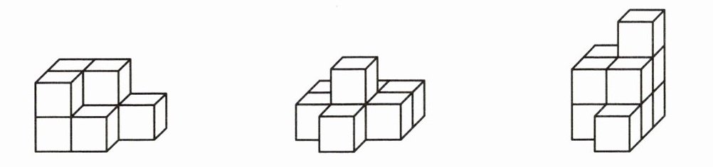1. 下面的物体都是由若干个1立方厘米的小正方体摆成的,它们的体积各是多少立方厘米?在括号里填一填。