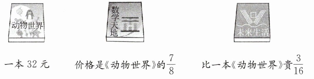 答:一本《未来生活》比一本《动物世界》贵6元。