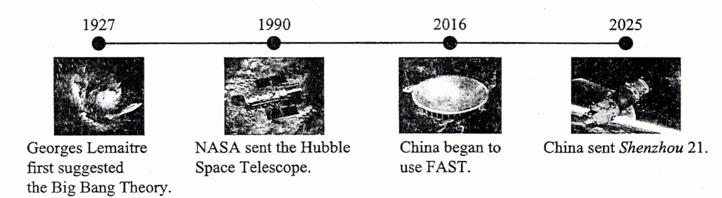 Georges Lemaitre first suggested the Big Bang Theory. NASA sent the Hubble Space Telescope. China began to use FAST. China sent Shenzhou 21.