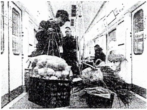 Every morning around 6 o'clock,the Shichuan Town Station is full of farmers. They carry baskets filled with fresh vegetables on their backs,or use shoulder poles(扁担)to carry the baskets. The station used to open at 6:15 a.m. To help the farmers,now it opens ten minutes earlier every day.