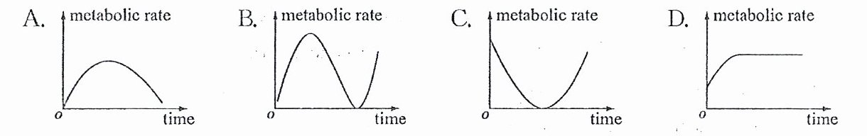 ()5. According to Paragraph 2,which of the following shows the change in your metabolic rate after you complete plank exercise?