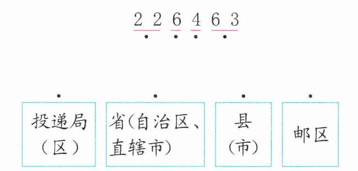 1. 邮政编码由六位数字组成,下面是江苏省南通市如东县河口镇的邮政编码,每个部分表示的意义分别是什么?连一连。