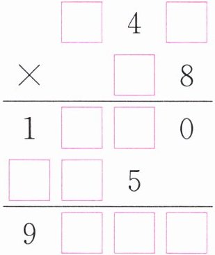 解析:先确定第一个乘数的个位上是5,然后可以确定第一个乘数的百位上可能是1或2,用“尝试法”试一试,就能确定第一个乘数是245,第二个乘数是38。
