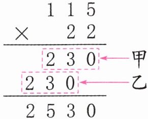 3. (镇江真题)小红录入一篇文章,平均每分钟录入115个字,22分钟完成了任务。下面竖式中“甲”和“乙”都表示录入的字数,关于它们之间的关系,下面的说法正确的是(