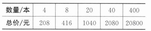 单价不变,每次购买的数量与4本相比要乘几,总价就是208元乘几