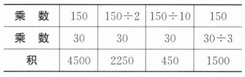 积不变 举例不唯一,如$32×8=256$,$(32×4)×(8÷4)=256$