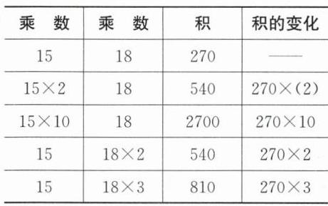 观察上面两个表中乘数和积之间的变化规律,我们可以发现:一个乘数(