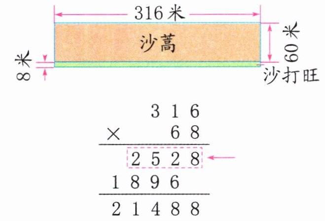 2. 如图所示为沙漠中的一块绿地,乘法竖式中的虚线框部分表示图中的(