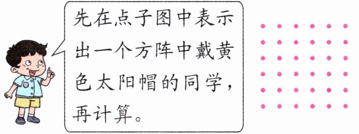 3. (几何直观)学校会操表演上,四年级共组成了3个方阵,每个方阵的同学排成了6行,每行6人。每个方阵最外面的同学戴红色的太阳帽,其余的同学戴黄色的太阳帽。需要准备红色和黄色的太阳帽各多少顶?
