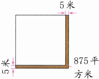 425÷5=85(米) (85+5)×(85+5)=8100(平方米) 解析:如图,增加的部分可分为三部分,求其中一个长方形的面积,列式为875−5×5=