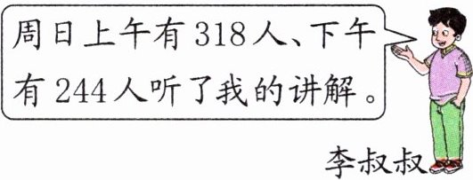 6. (生活应用)李叔叔周末去红色基地做志愿讲解员,周六他给556人做了讲解。周末两天他一共给多少人做了讲解?