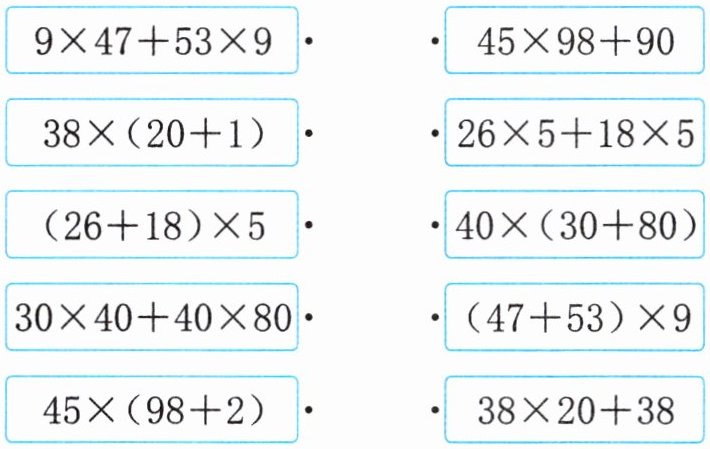 4. 把得数相等的两道算式用线连一连。