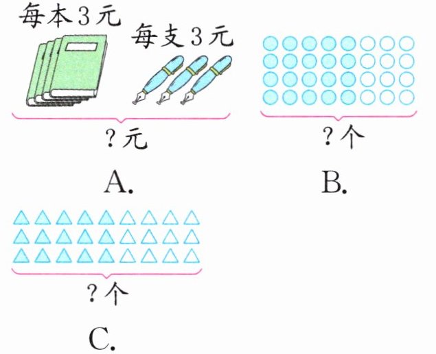 (1)(徐州真题)下面各图中,能说明“$5×3+4×3$”与“$(5+4)×3$”相等的是(