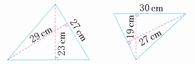 5. (1)在下面的方格纸上画出一个底为6cm、高为4cm的三角形和一个高为6cm、底为4cm的三角形。