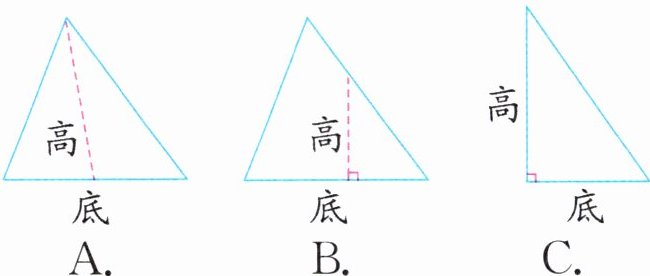 易错分析:找三角形的底和高时,容易受直观感知的影响认为竖直方向的就是高。解决问题时要注意底和高的对应关系及垂直关系,排除干扰的数据。