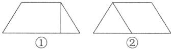 (2) 如图①,在梯形中画一条线段,把它分成一个三角形和一个梯形;如图②,在梯形中画一条线段,把它分成一个平行四边形和一个三角形。