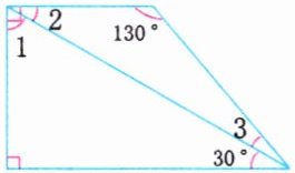 4. 如图,计算梯形中 $ \angle 1 $、$ \angle 2 $、$ \angle 3 $ 的度数。