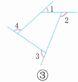 你能读懂小月的思考过程吗?带着你的理解,求出图③中$∠1$、$∠2$、$∠3$、$∠4$这4个角的度数和。