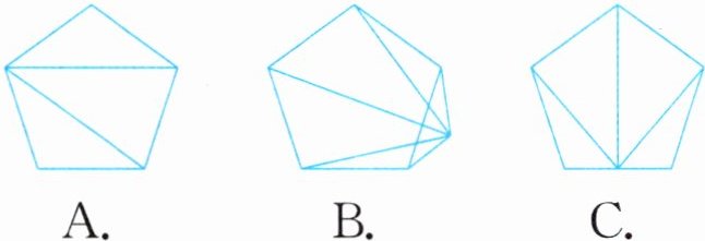 (1)(扬州真题)多边形可转化成若干个三角形,再用“$180^{\circ}×$三角形的个数”求出多边形的内角和。下面应用这个思路的是(