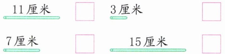 4. 用6厘米和9厘米长的小棒各一根,和下面哪些小棒能围成一个三角形(只用三根小棒)? 在所有正确答案后面的□里画“√”。