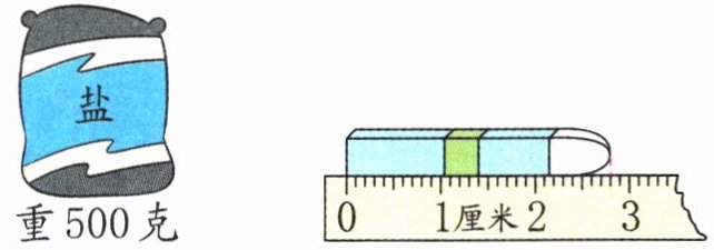 2. 看图写出下面的质量或长度。