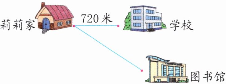 (1) 若莉莉从家骑车到图书馆用了14分钟,则莉莉家到图书馆的路程是多少米?