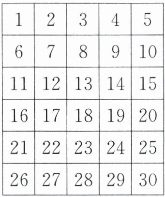 在下图中任意框出 5 个数。5 个数的和与框出的中间的数有什么关系?如果 5 个数的和是 95,那么框出的 5 个数分别是多少?(5 分)