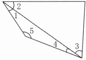 如图,∠1+∠2=∠3=57°,∠4=14°,∠5=145°,求∠2 的度数。