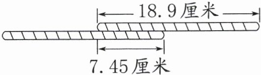 如图,媛媛把两根同样长的吸管用胶水粘在一起,作为自制灯笼的一根支架,每根吸管长 18.9 厘米,粘住的部分长 7.45 厘米。这根支架长多少厘米?