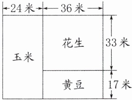 (3)答案不唯一,如种花生的面积比种黄豆的面积多多少平方米? (33−17)×36=576(平方米)