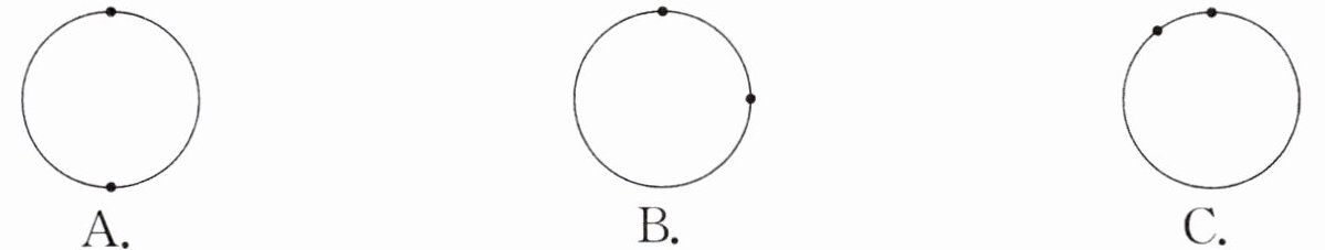 两人共走了$4\frac{1}{2}$圈,即4圈后又合走了$\frac{1}{2}$圈,此时两人相遇后又相距$\frac{1}{2}$圈,位置关系如同最初出发时相背而行$\frac{1}{2}$圈,对应图A。