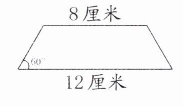 4. 如右上图,一个等腰梯形的上底长8厘米,下底长12厘米,有一个底角是$60^{\circ }$,这个等腰梯形的周长是(